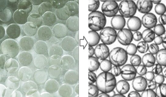 破砕や形状の変化を確認。破砕進行は圧力損失増加や樹脂流出の原因に。