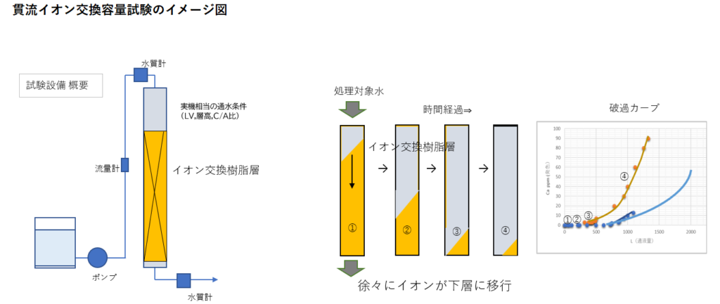 近年では、貫流試験とは異なるアプローチとして「イオン交換速度」を直接測定する試験も用いられています。