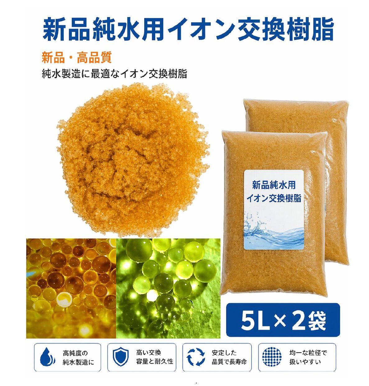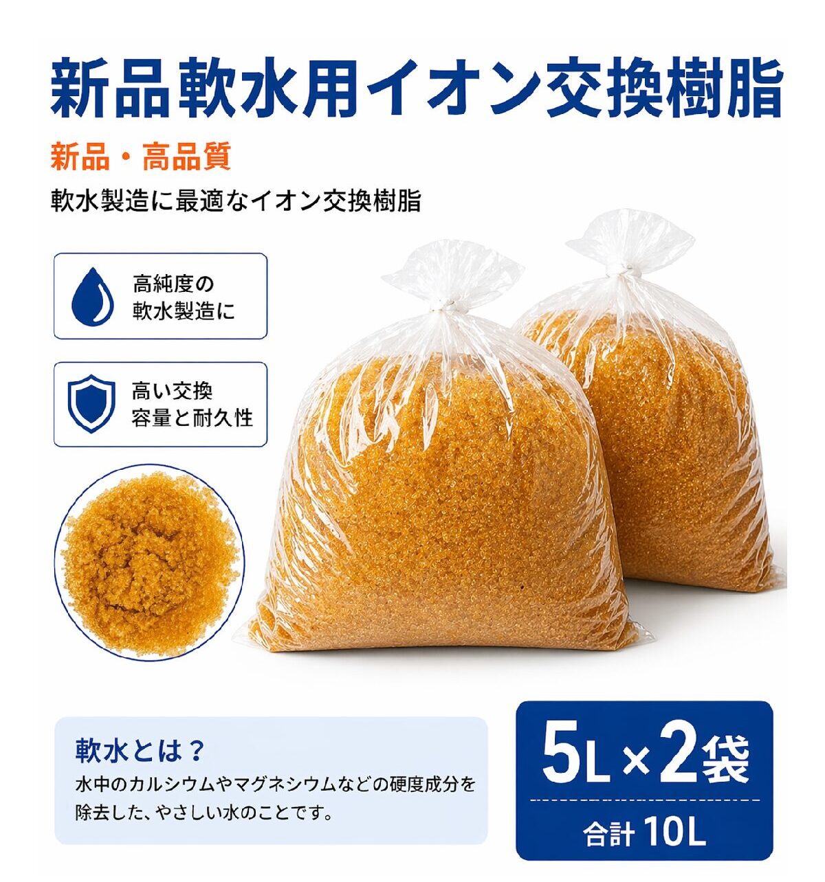 新品軟水用イオン交換樹脂 (5L×2袋)